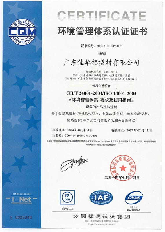 環(huán)境管理體系認(rèn)證證書