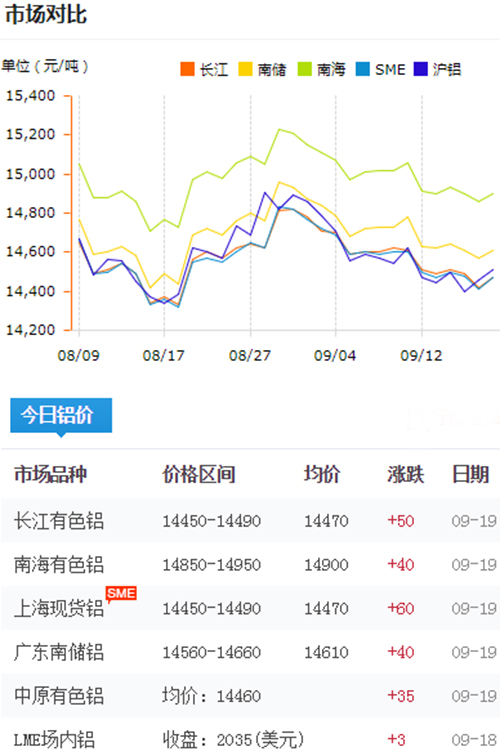 鋁錠價格今日鋁價2018-9-19