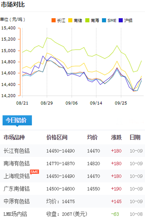 鋁錠價(jià)格今日鋁價(jià)2018-10-9