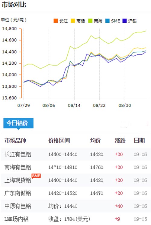 鋁錠價格今日鋁價2019-09-06