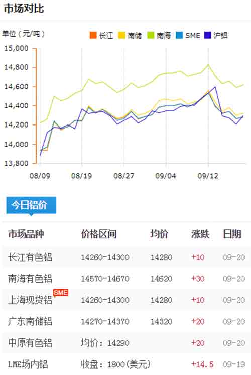 鋁錠價格今日鋁價2019-09-20