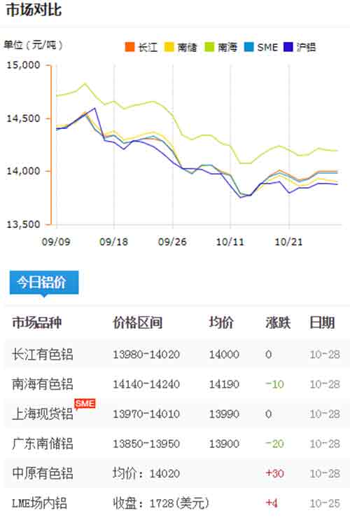 鋁錠價(jià)格今日鋁價(jià)2019-10-28