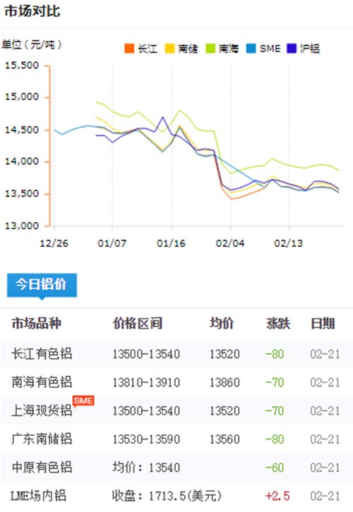 鋁錠價格今日鋁價2020-02-21