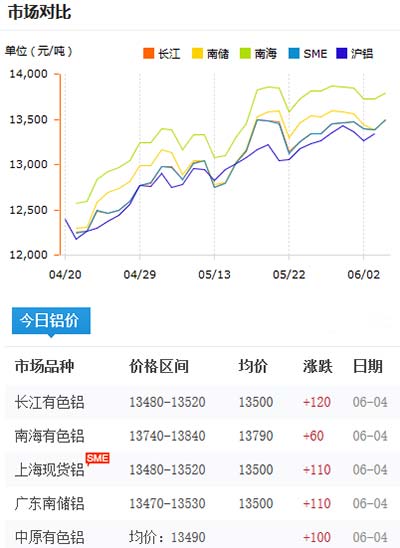 鋁錠價格今日鋁價2020-06-04