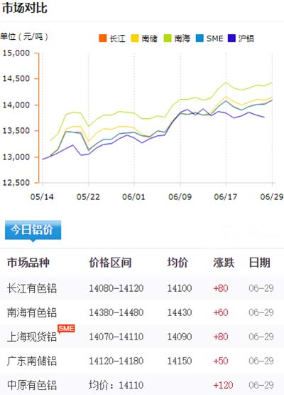 鋁錠價格今日鋁價2020-06-29