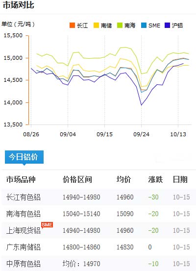 鋁錠價格今日鋁價2020-10-15