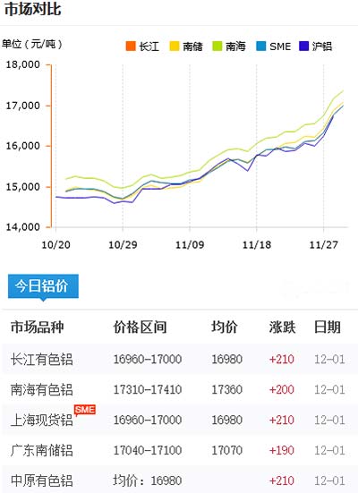 鋁錠價格今日鋁價2020-12-01