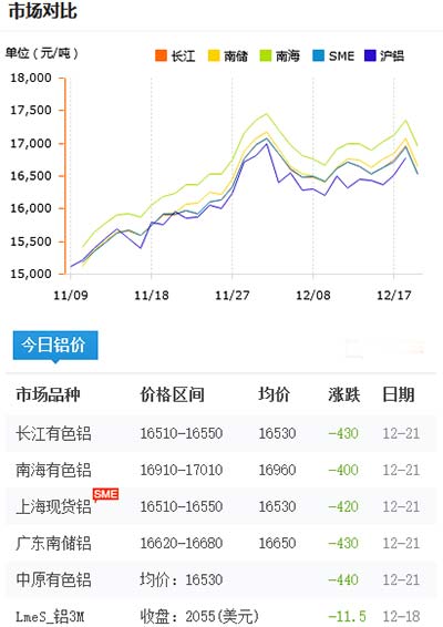鋁錠價格今日鋁價2020-12-21