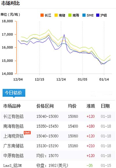 鋁錠價(jià)格今日鋁價(jià)2021-01-18