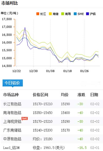 鋁錠價格今日鋁價2021-02-02
