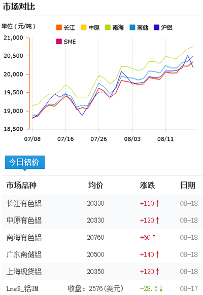 鋁錠價格今日鋁價2021-08-18
