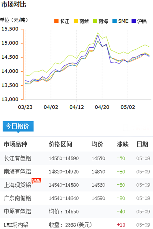 鋁錠價格今日鋁價2018-5-9