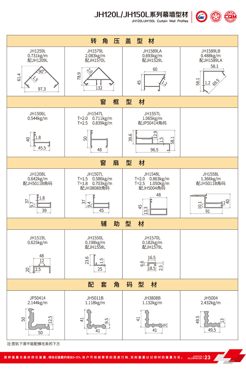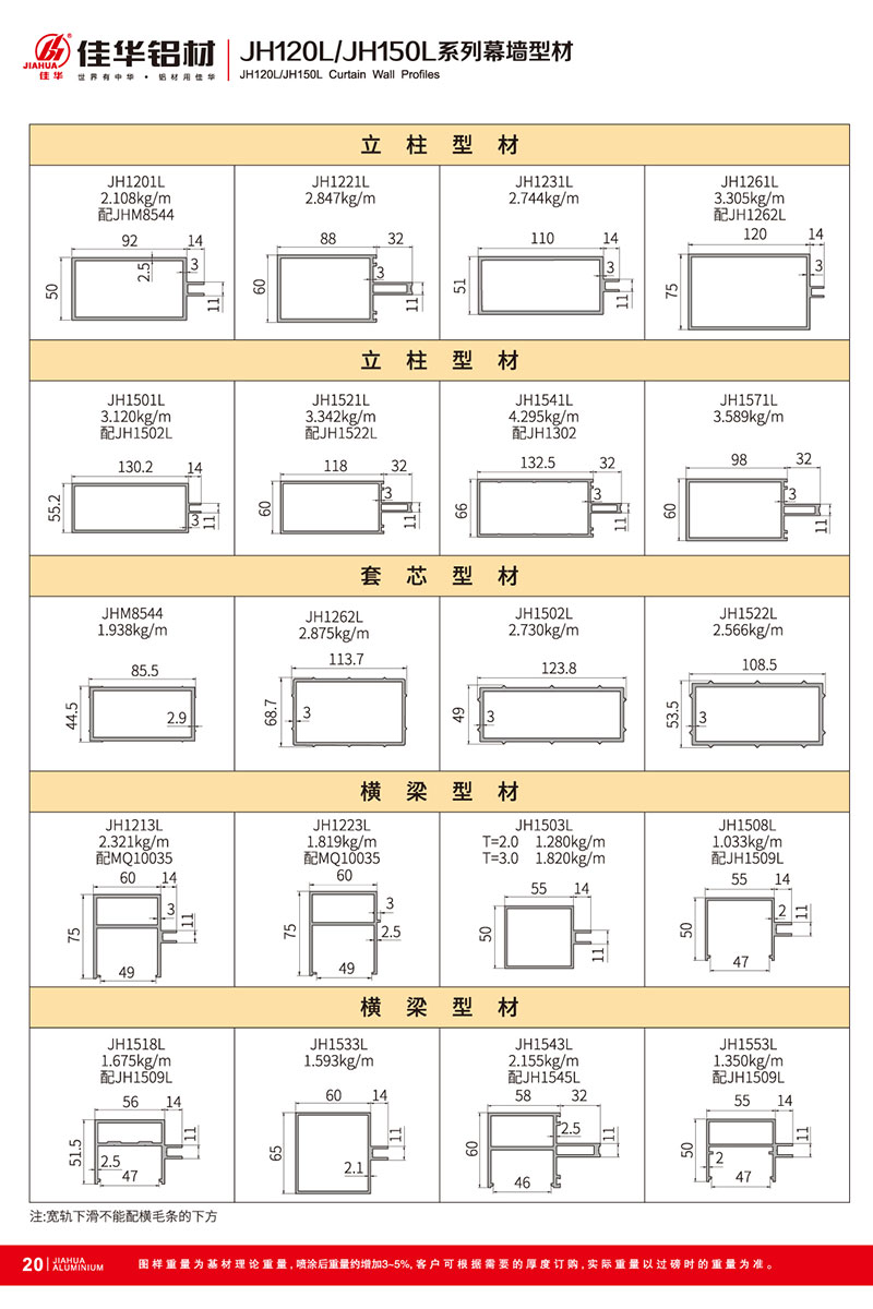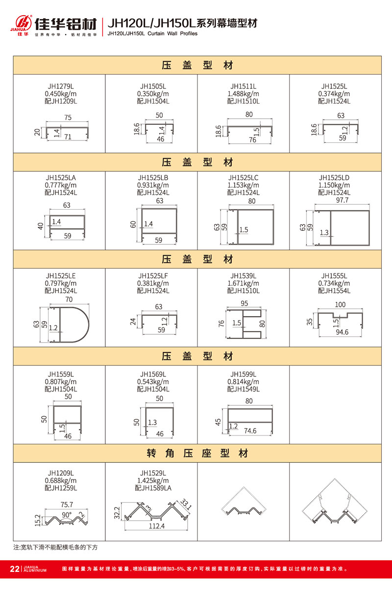 鋁型材規(guī)格型號(hào):JH120L/150L B