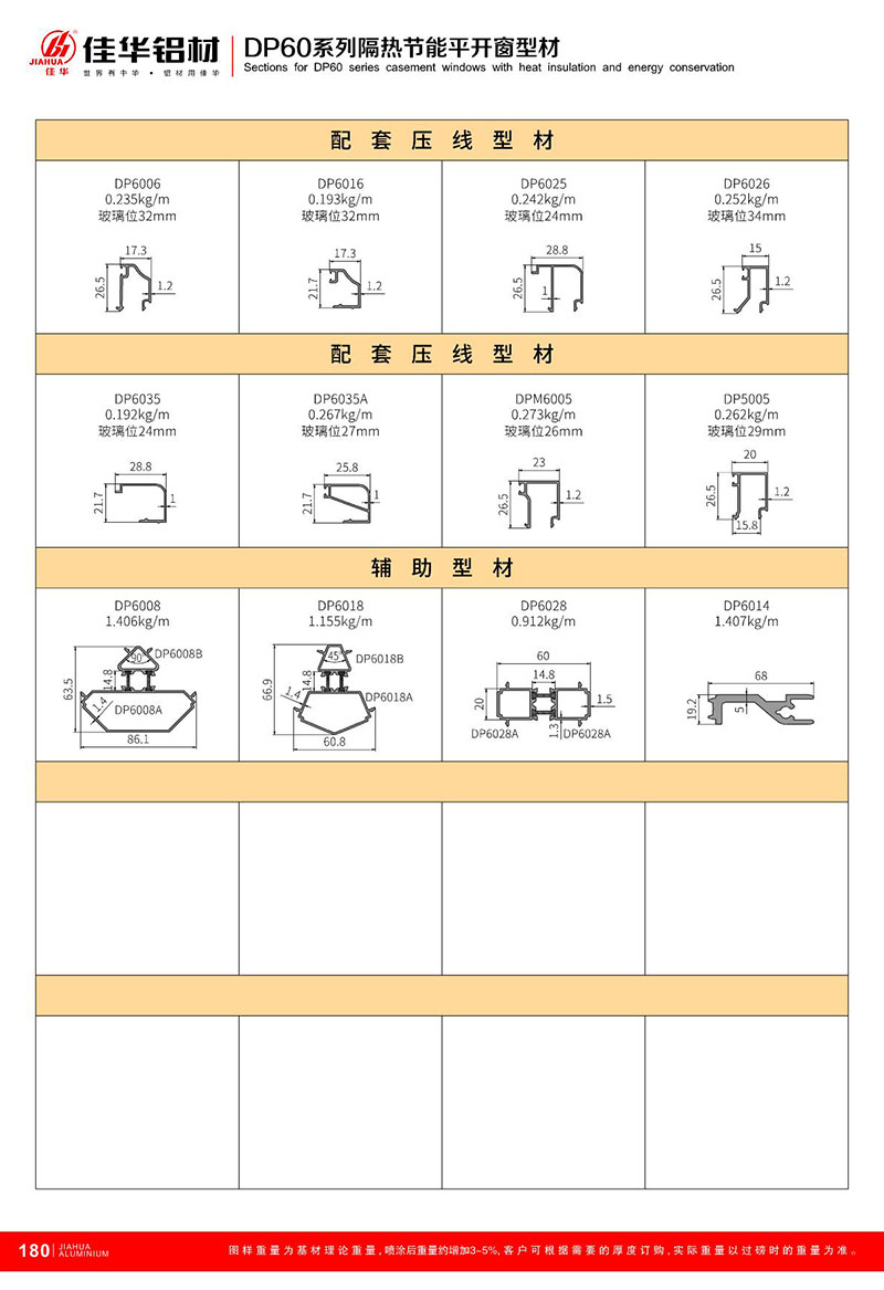 鋁型材規格型號:DP60平開系列 A