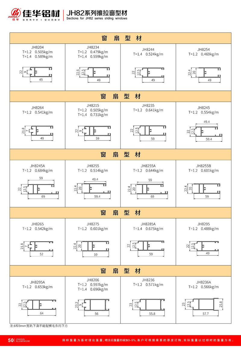 鋁型材規(guī)格型號(hào):JH82